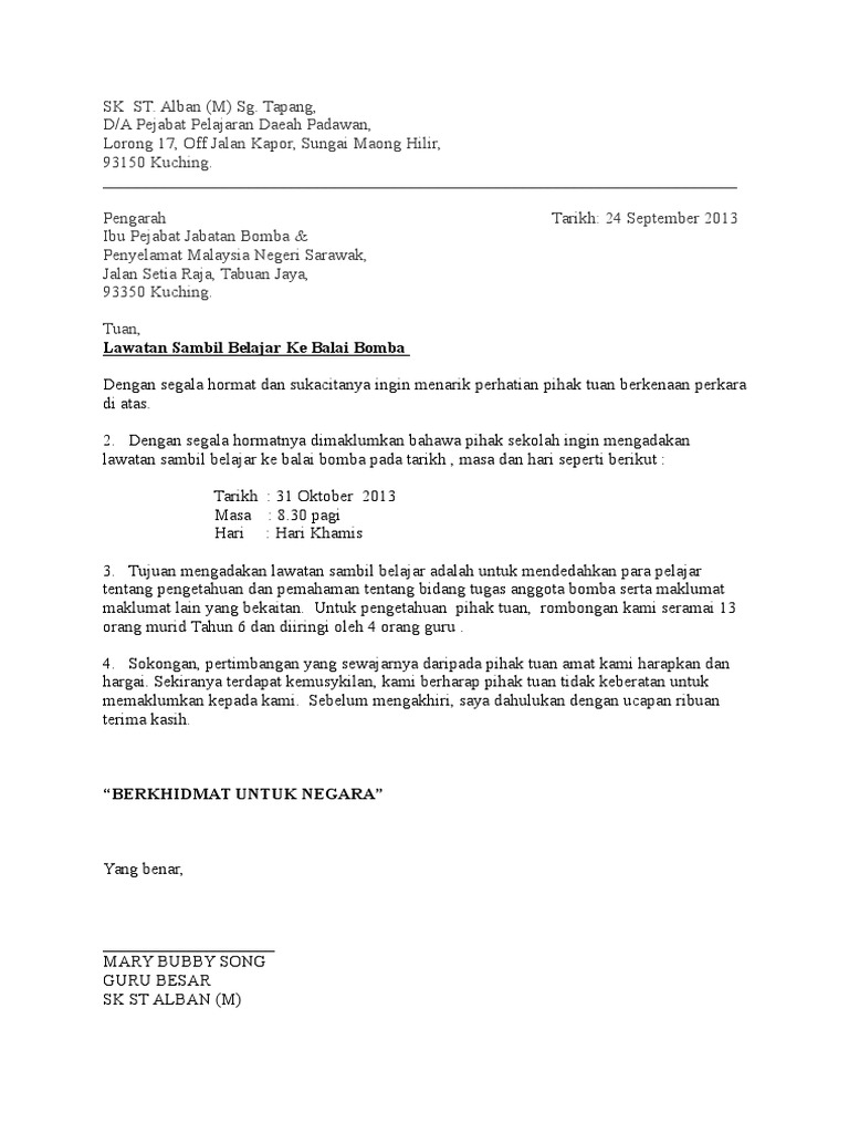 Contoh Surat Rasmi Lawatan Ke Balai Bomba Surat Rasmi K