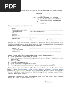 Surat Permohonan Bantuan Biaya Pendidikan Mahasiswa Dki Jakarta