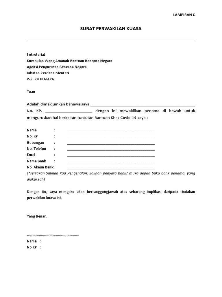 Contoh Surat Rasmi Wakil Kuasa J Kosong V