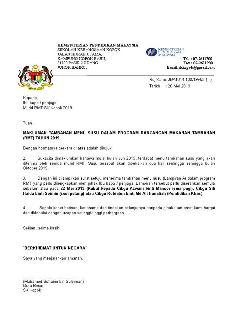 Lampiran Bb Surat Tawaran Membekal Menu Susu Dalam Rmt Kepada Pembekal