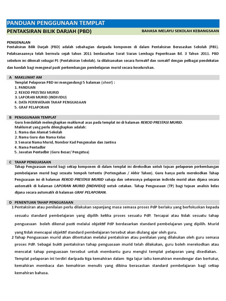 Panduan Penggunaan Templat Pelaporan Pentaksiran Bilik Darjah Pbd