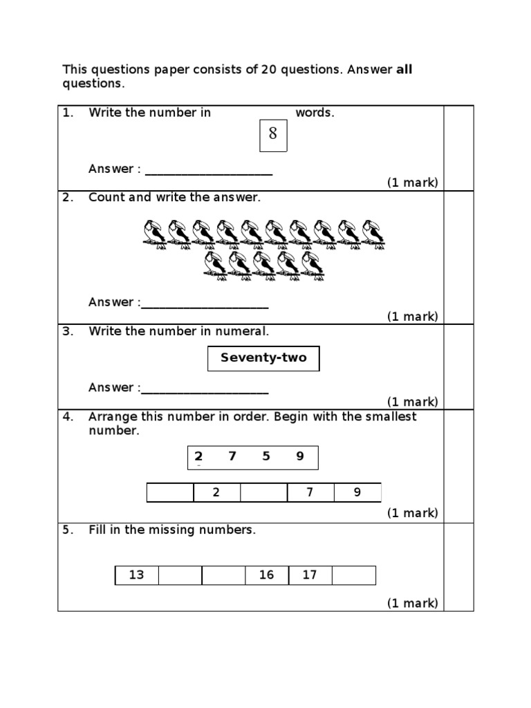 Write the number of objects in words 4 5 6. Buy textbook mathematics year 1 part 1 dlp online published by dewan bahasa dan pustaka isbn. Where to download mathematics year 2 exam paper form 2 maths exam paper pdf due to the cancellation of the may and june exam series in 2020 we re aware that teachers may wish to use the 2019 summer and 2019 november exam papers for mock exams.