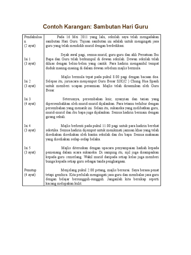 Seri Cergas Karangan Pt3 Laporan Sambutan Hari Guru Facebook