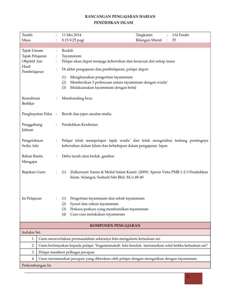 Rph Pendidikan Islam 1 5 Lengkap Setahun Great Teacher