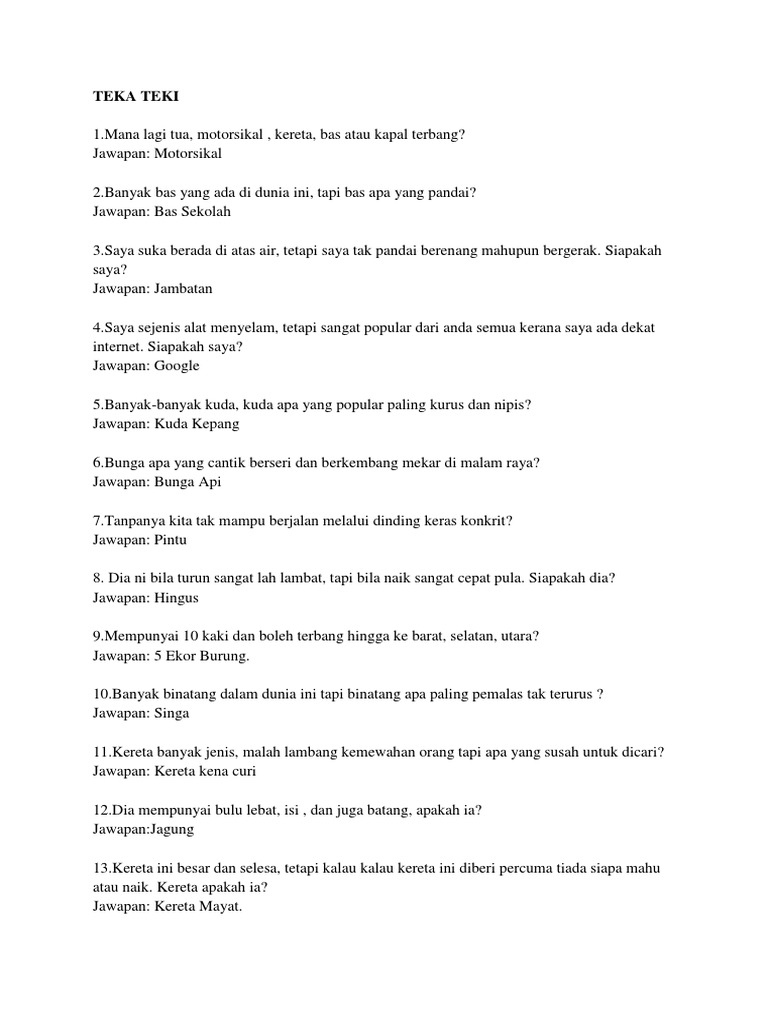 Pelbagai Contoh Teka Teki Paling Susah Beserta Jawapan Yang Berguna Untuk Ibubapa Pekeliling Terbaru Kerajaan