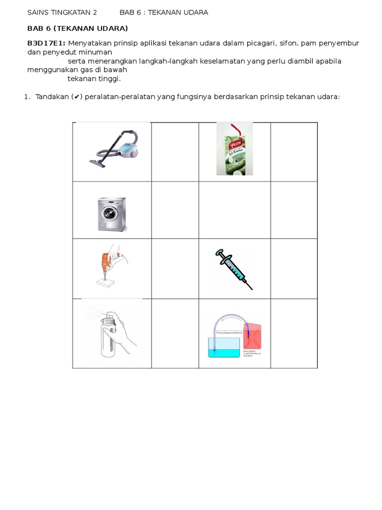 Bab 6 Tekanan Udara B3d17e1 Menyatakan Prinsip Aplikasi Tekanan Udara Dalam Picagari Sifon Pam Penyembur