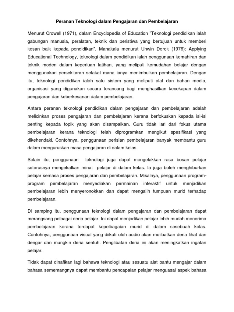 Peranan Teknologi Dalam Pengajaran Dan Pembelajaran