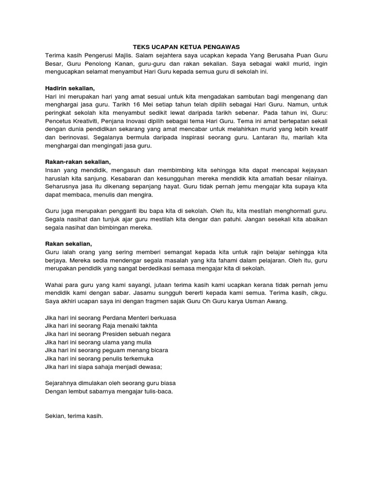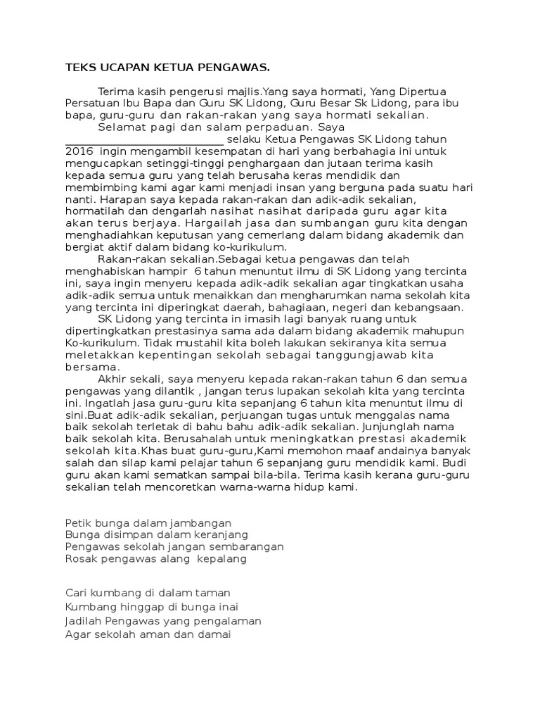 43100089 Teks Ucapan Ketua Pengawas Pdf