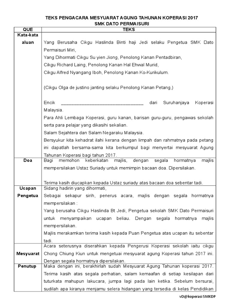 Teks Pengacara Mesyuarat Agung Tahunan Koperasi 2018