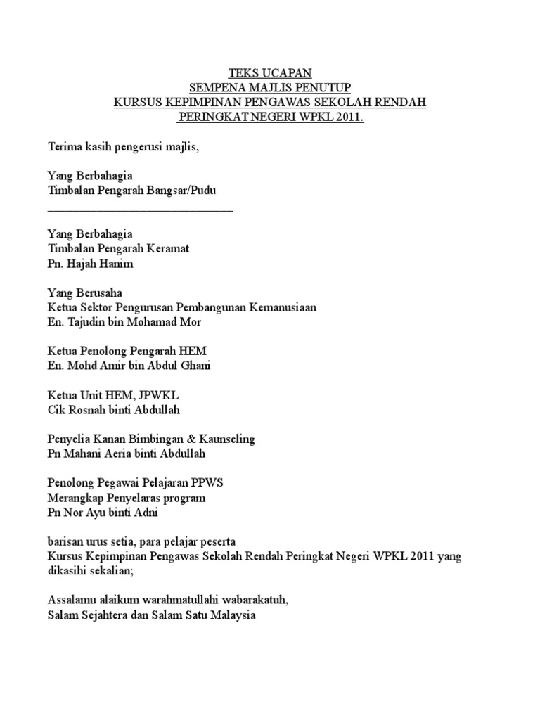 Teks Ucapan Majlis Penutup