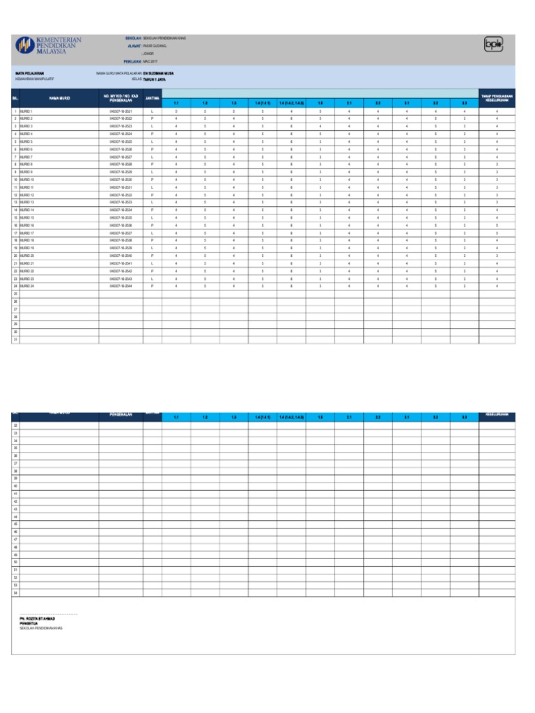 Himpunan Templat Pelaporan Pentaksiran Bilik Darjah Pbd Tahun 1