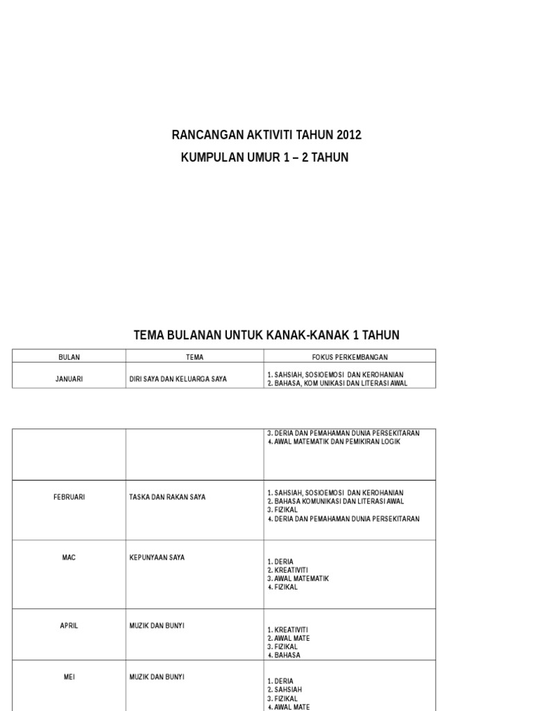 Himpunan Cadangan Aktiviti Ikut Tema 2012