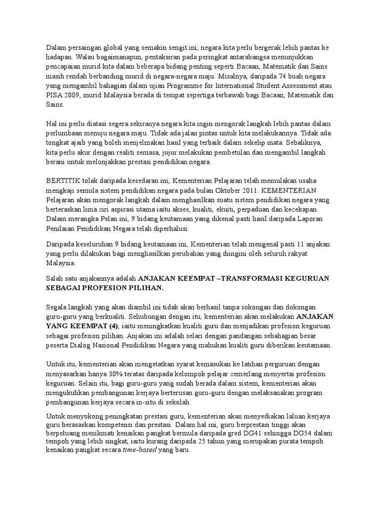 Bagaimanakah Transformasi Keguruan Sebagai Profesion Pilihan Dapat Direalisasikan Menerusi Pelan Pendidikan