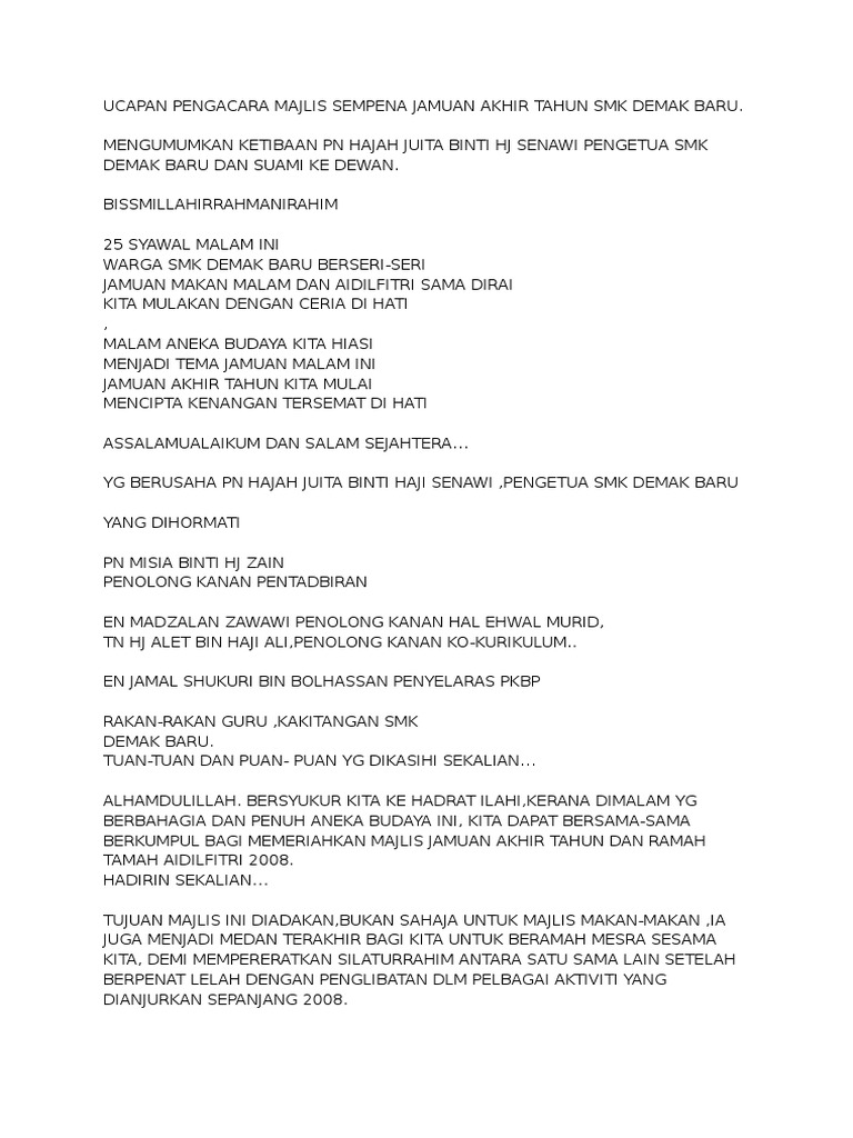Doc Contoh Teks Ucapan Pengacara Majlis Sempena Jamuan Saadiah M Academia Edu