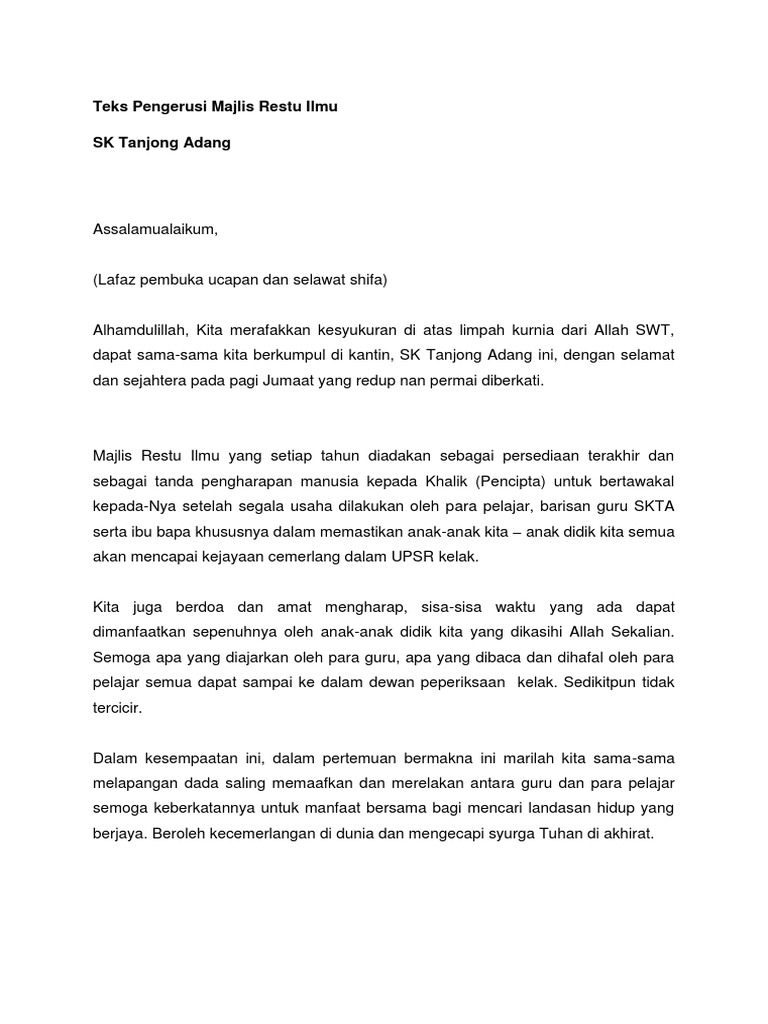 Doc Teks Pengacara Majlis Restu Ilmu Spm 2017 Azrul Nizam Academia Edu