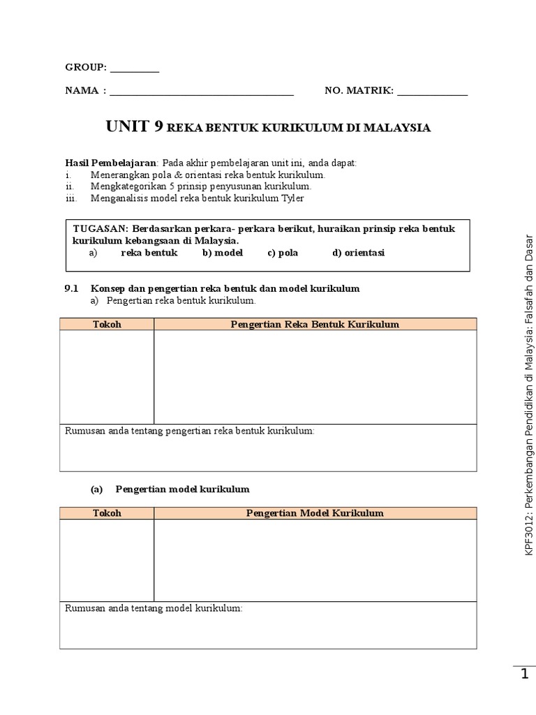 Unit 9 Reka Bentuk Kurikulum Group Nama No Matrik Unit 9 Reka Bentuk Kurikulum Di Malaysia Tugasan Berdasarkan Perkara Perkara Berikut Huraikan Course Hero