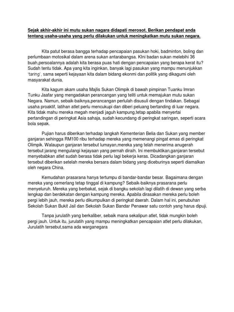 Contoh Karangan Sukan Pt3