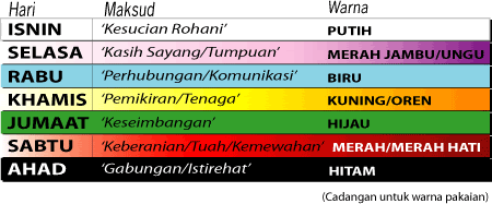 Warna Dan Pakaian Mengikut Hari Dan Psikologi Mimin Adam