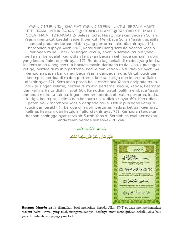 Pesan Bonda Cara Melaksanakan Bacaan Yassin 7 Mubin Facebook